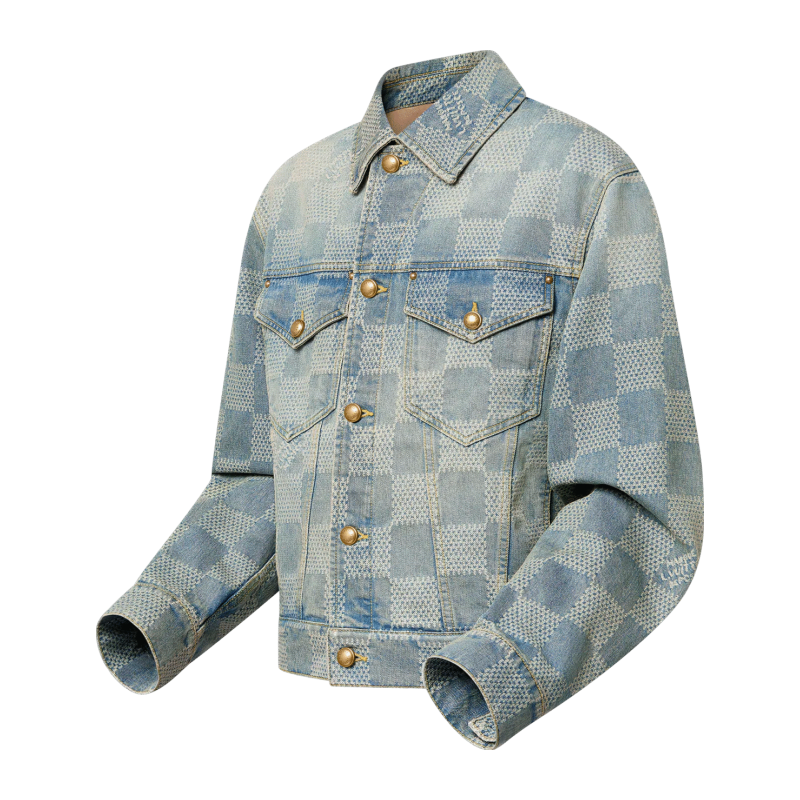LV/ルイ・ヴィトンの男性用コート・ダミエ3Dジャカード・インディゴジャケット・サインボタン・新作