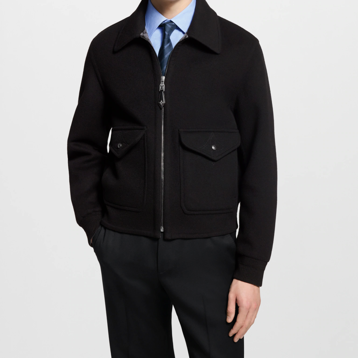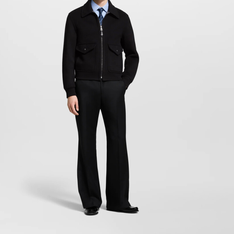 LV/ルイ・ヴィトンの男性用コート・ブラックウールシルク混紡・ジャカード織り・新作