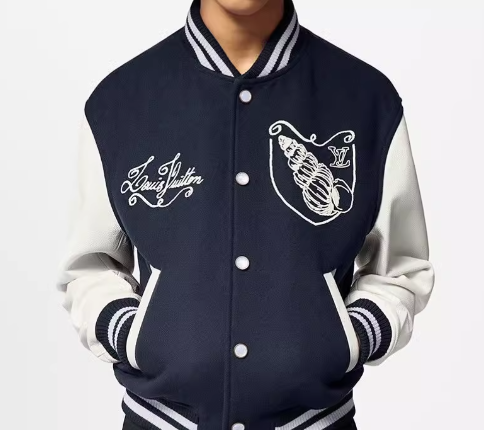 LV/ルイ・ヴィトン 2024年モデル メンズ ネイビーブルー レザー×ウールブレンド ボンバージャケット