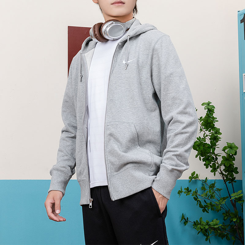 NIKE ナイキ グレー スウェット メンズ 春秋新作 ピュアコットン スポーツウェア カジュアル ジップアップ ニット ジャケット